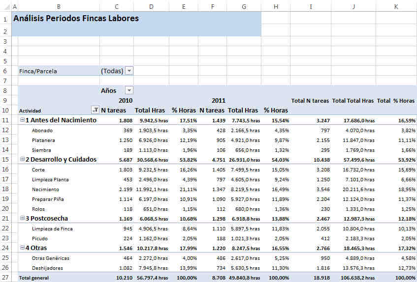 Basado en:Datos de registro de partes de trabajo desarrollado en Access sobre diversas fincas de cultivo de plátanos Ficheros necesarios: Enunciado - Aplicación en Access - Fichero base con datos planos en Excel - Fichero Excel Solucionado |