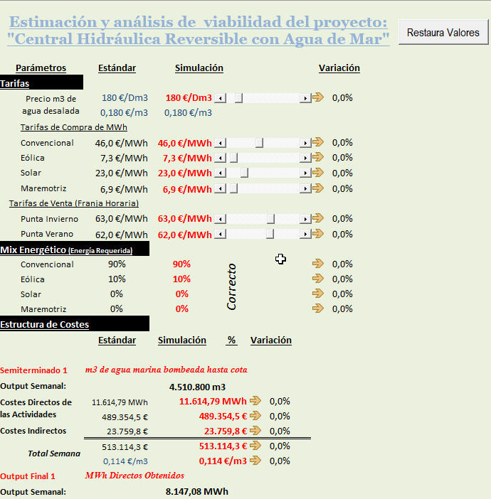 Proyecto de Central de Agua Reversible | Estimación y análisis de viabilidad del proyecto: "Central Hidráulica Reversible con Agua de Mar y desaladora acoplada" |