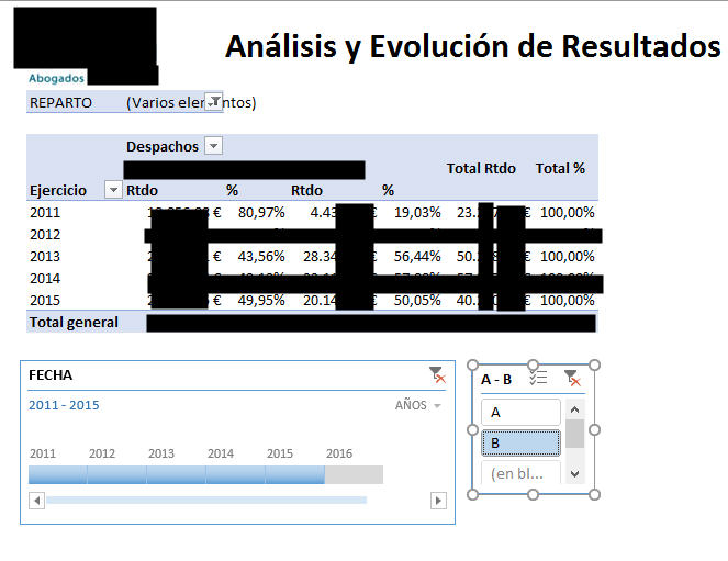 Asesorias y Abogados | Cuadro de Mando y análisis de Resultados de una Consultora Profesional | Particular Asesores | Trabajos Externos 1 |