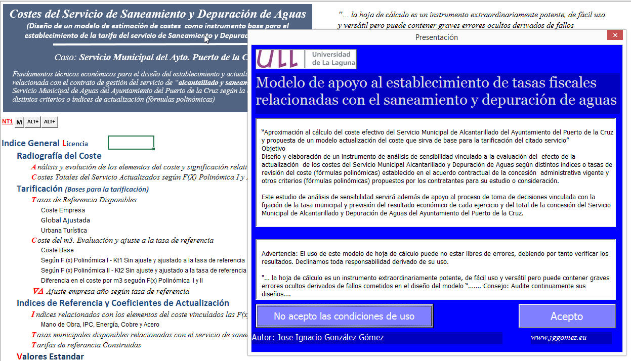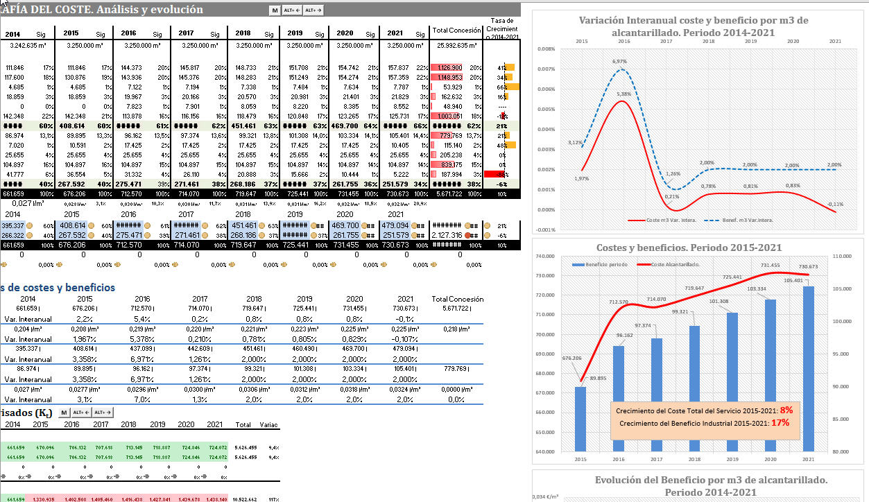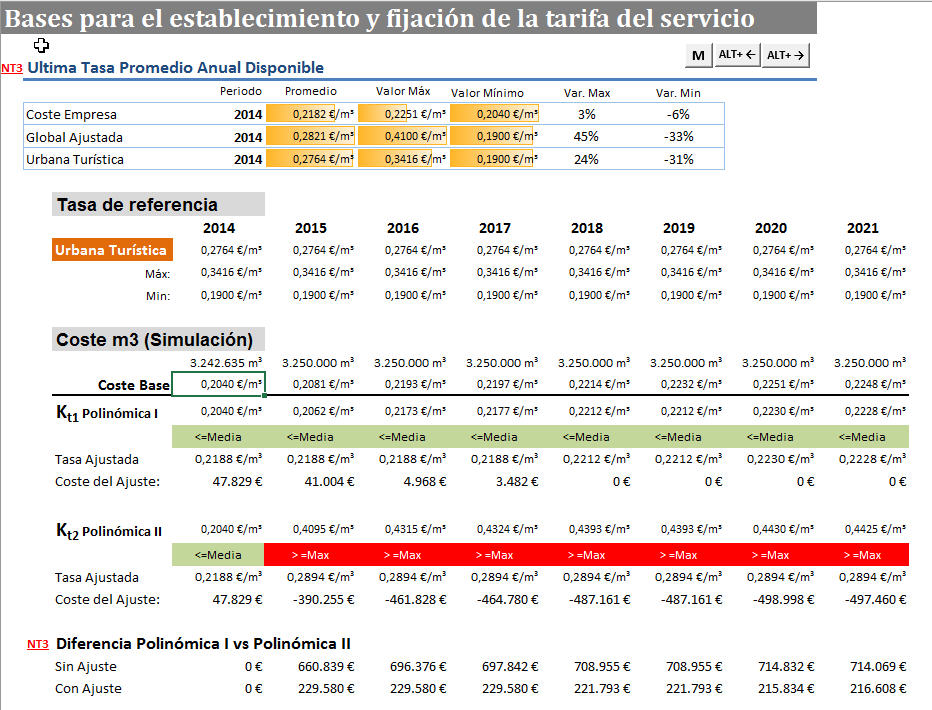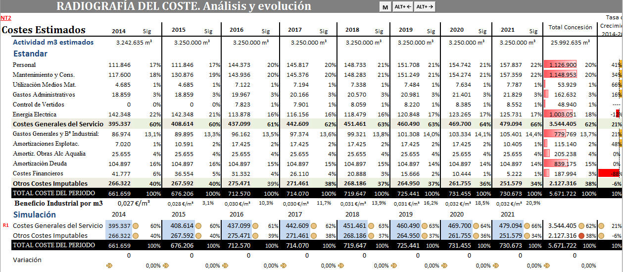 Análisis de Sensibilidad y de Costes en el cambio tarifa del Servicio Público de Depuración de Aguas y alcantarillado | Diseño y elaboración de un instrumento de análisis de sensibilidad vinculado a la evaluación del efecto de la actualización de los costes del Servicio Municipal Alcantarillado y Depuración de Aguas