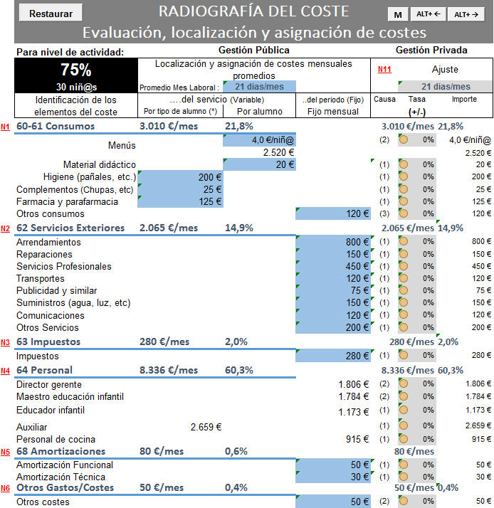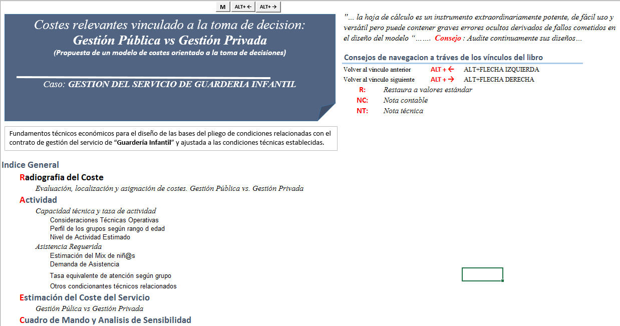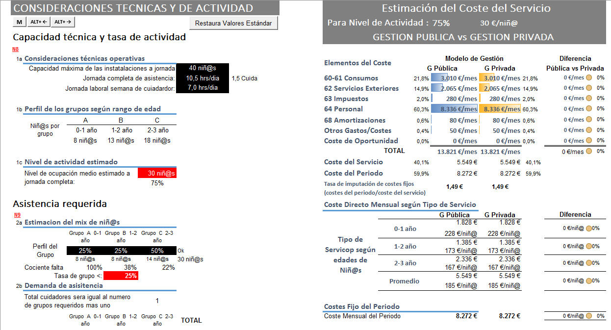 Ayto. de Santiago del Teide. Servicio Público de Guardería Infantil. | Costes relevantes vinculado a la toma de decision: Gestión Pública vs Gestión Privada Caso: GESTION DEL SERVICIO DE GUARDERIA INFANTIL Fundamentos técnicos económicos para el diseño de las bases del pliego de condiciones relacionadas con el contrato de gestión del servicio de “Guardería Infantil” y ajustada a las condiciones técnicas establecidas. |