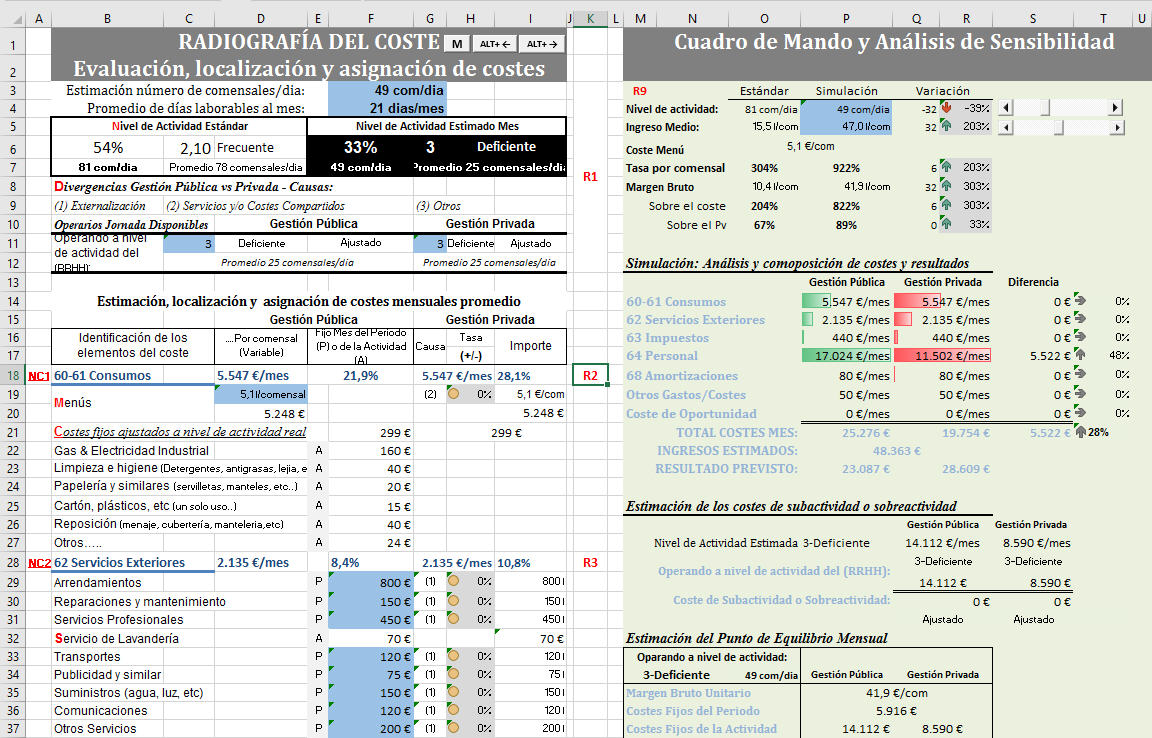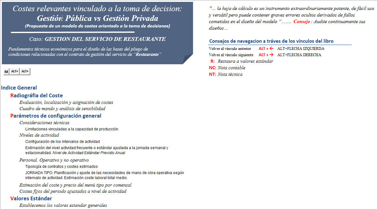 Ayto. de Santiago del Teide. Servicio Público de Restautante. | Costes relevantes vinculado a la toma de decision: Gestión Pública vs Gestión Privada Caso: GESTION DEL SERVICIO DE RESTAURANTE Fundamentos técnicos económicos para el diseño de las bases del pliego de condiciones relacionadas con el contrato de gestión del servicio de “Restaurante”. |