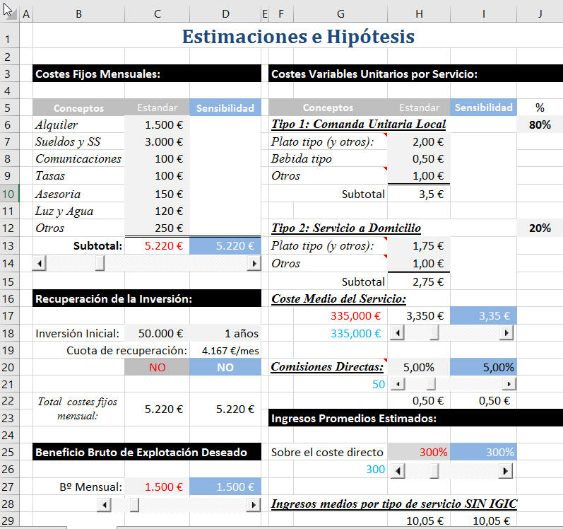 Restaurante Orlando | Viabilidad y analisis de sensibilidad para la gestion de un restaruante considerando el beneficio deseado y la recuperacion del coste de traspaso. | Particular | K I+D\Fundacion Universidad Convenios\Ayto Santiago del Teide 1 |